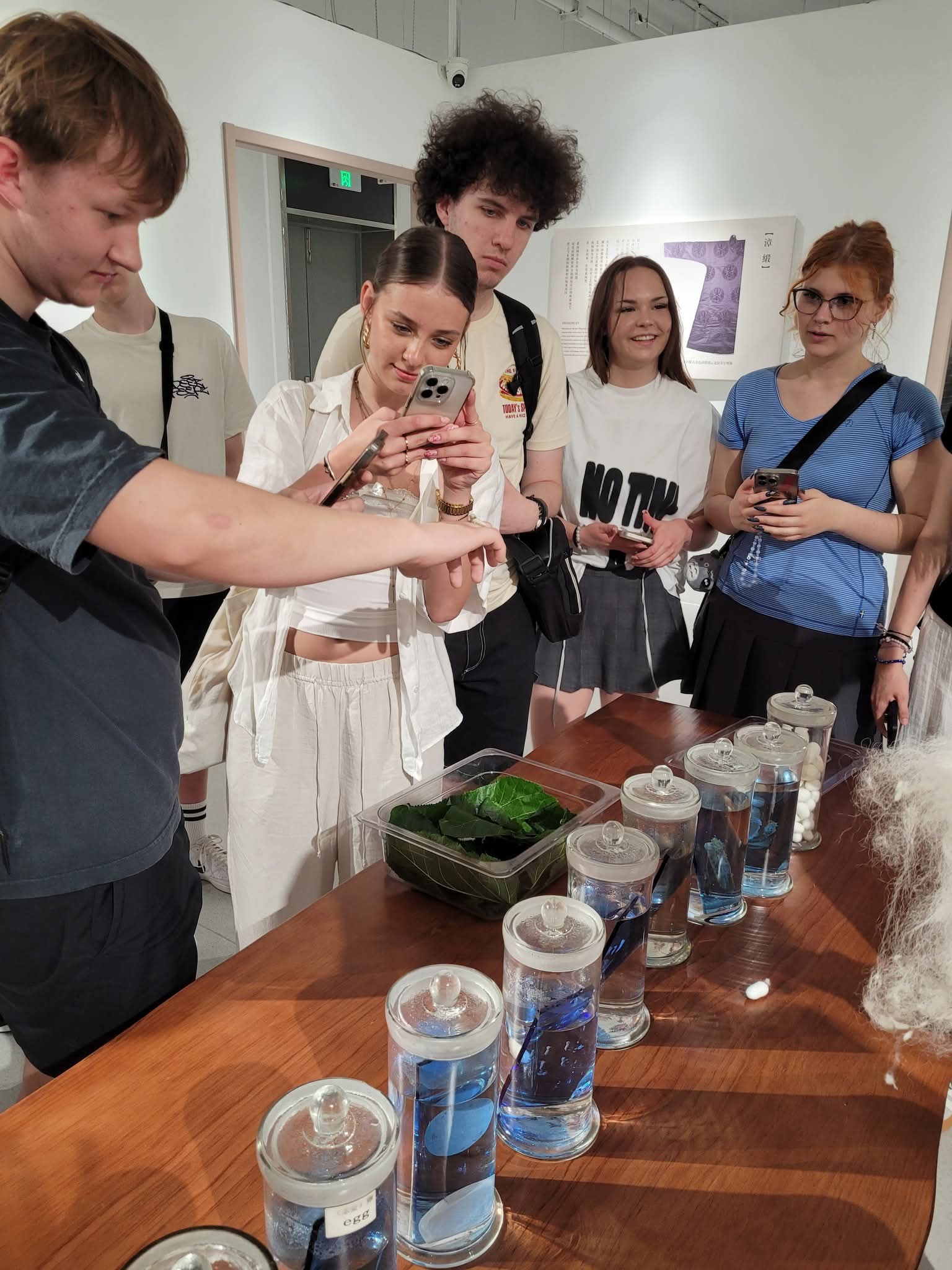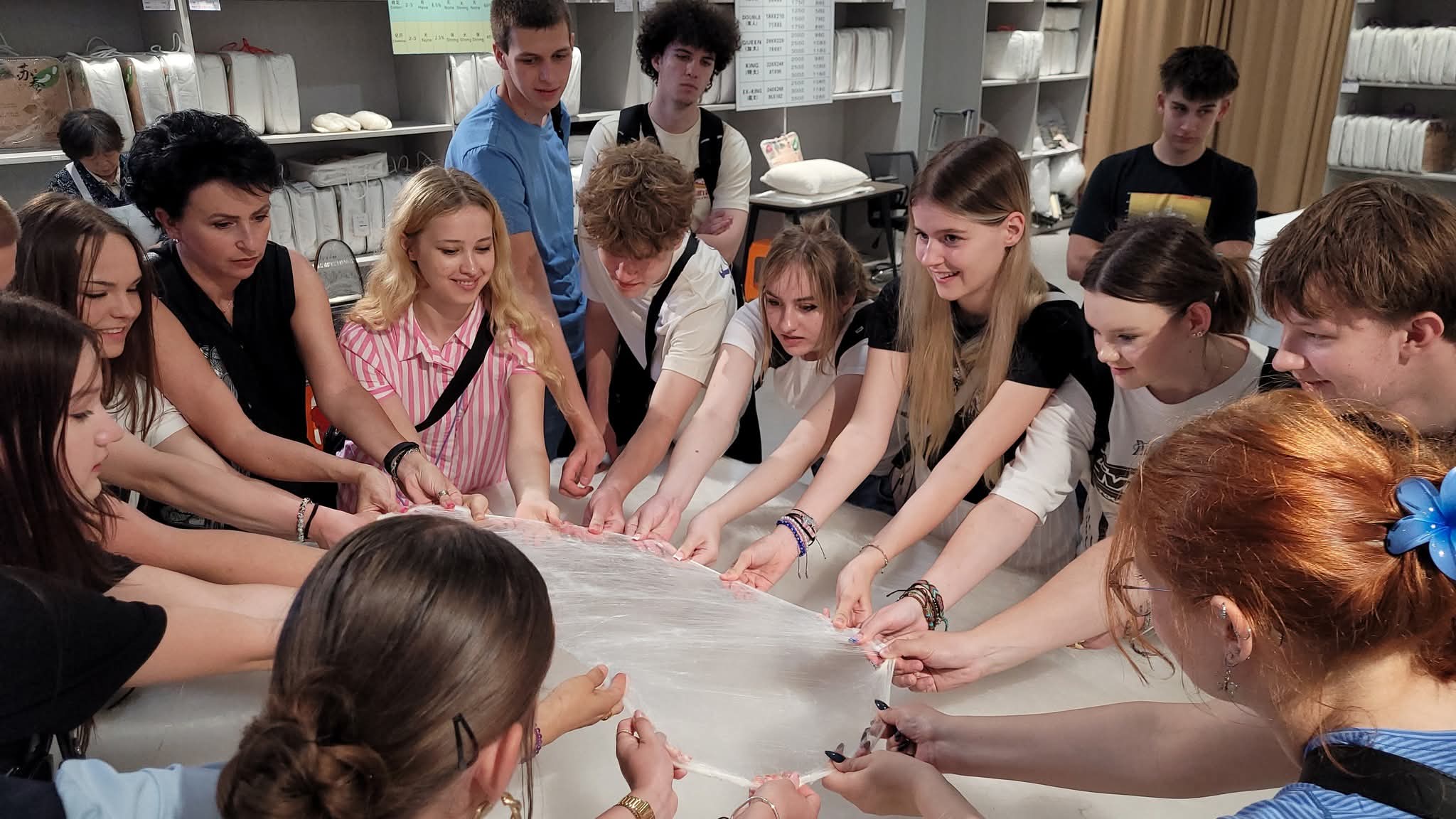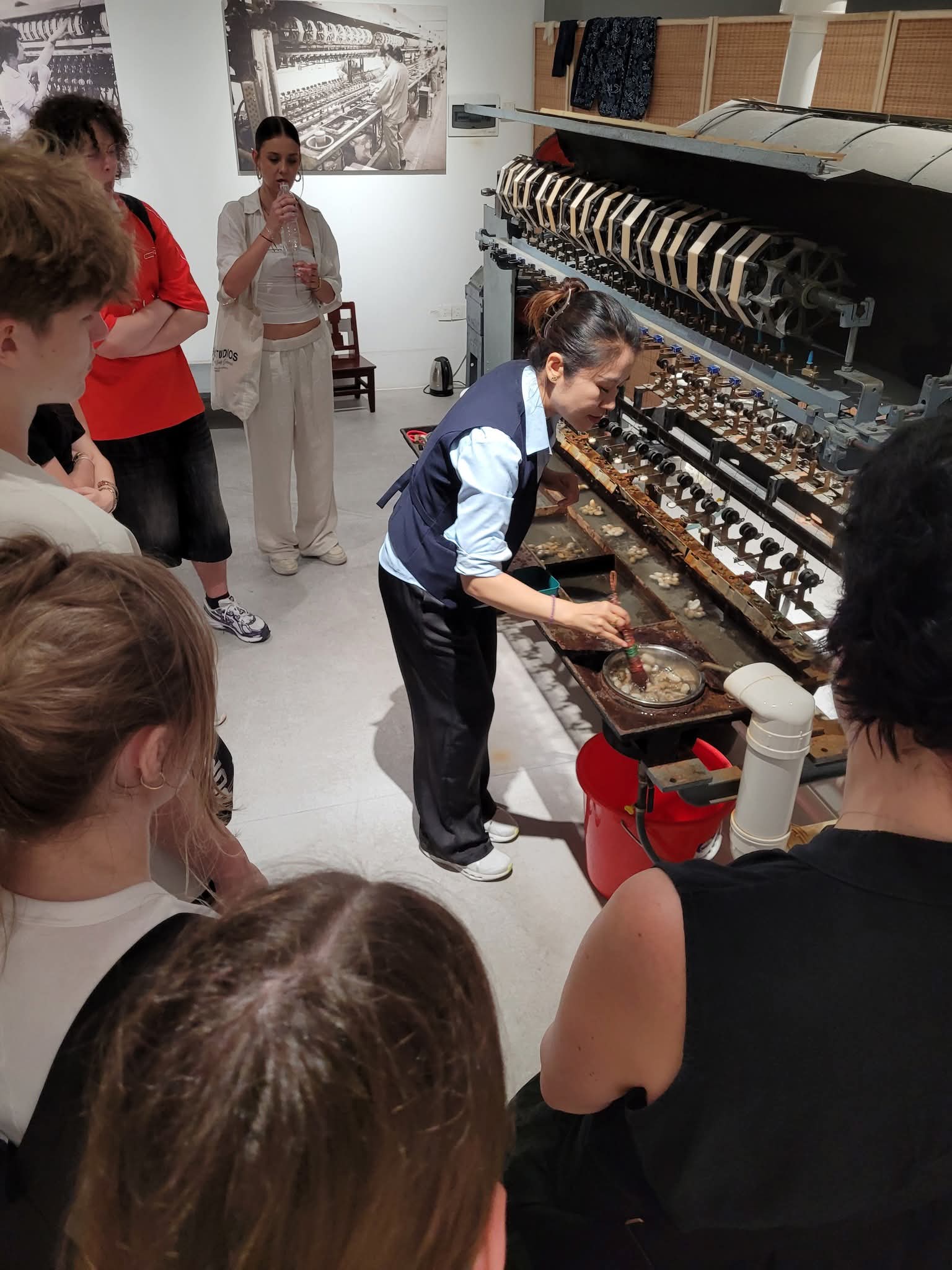 Wizyta w tradycyjnej fabryce jedwabiu okazała się jednym z najbardziej fascynujących momentów całej wyprawy. Uczniowie mogli z bliska zobaczyć cały proces produkcji jedwabiu – od hodowli jedwabników, przez pozyskiwanie kokonów, aż po przędzenie delikatnych nici i tkanie materiałów. Wielu z uczestników po raz pierwszy miało okazję dotknąć larwę jedwabnika czy surowy kokon oraz zobaczyć, jak z pojedynczej nici powstaje gotowy materiał.