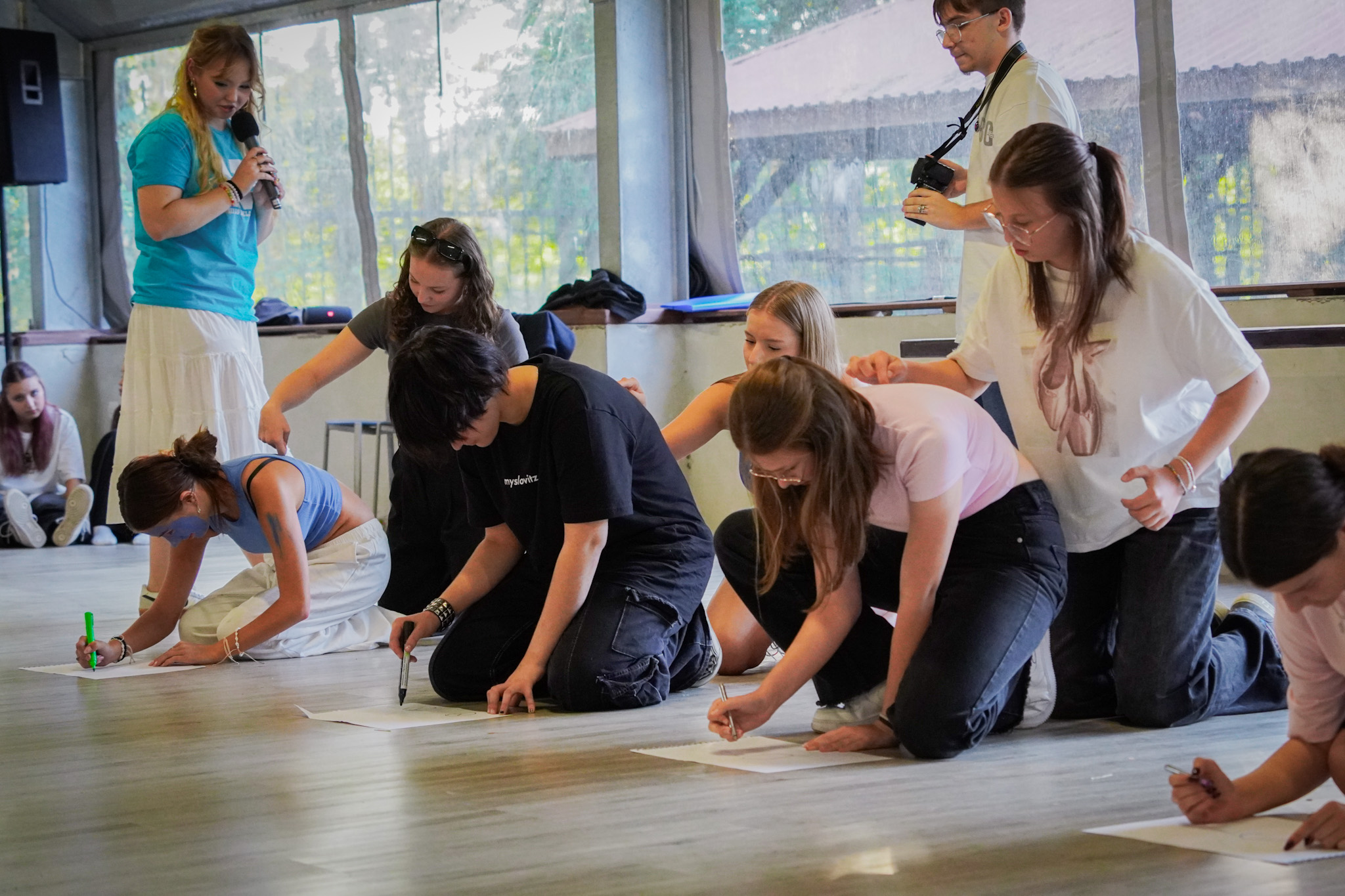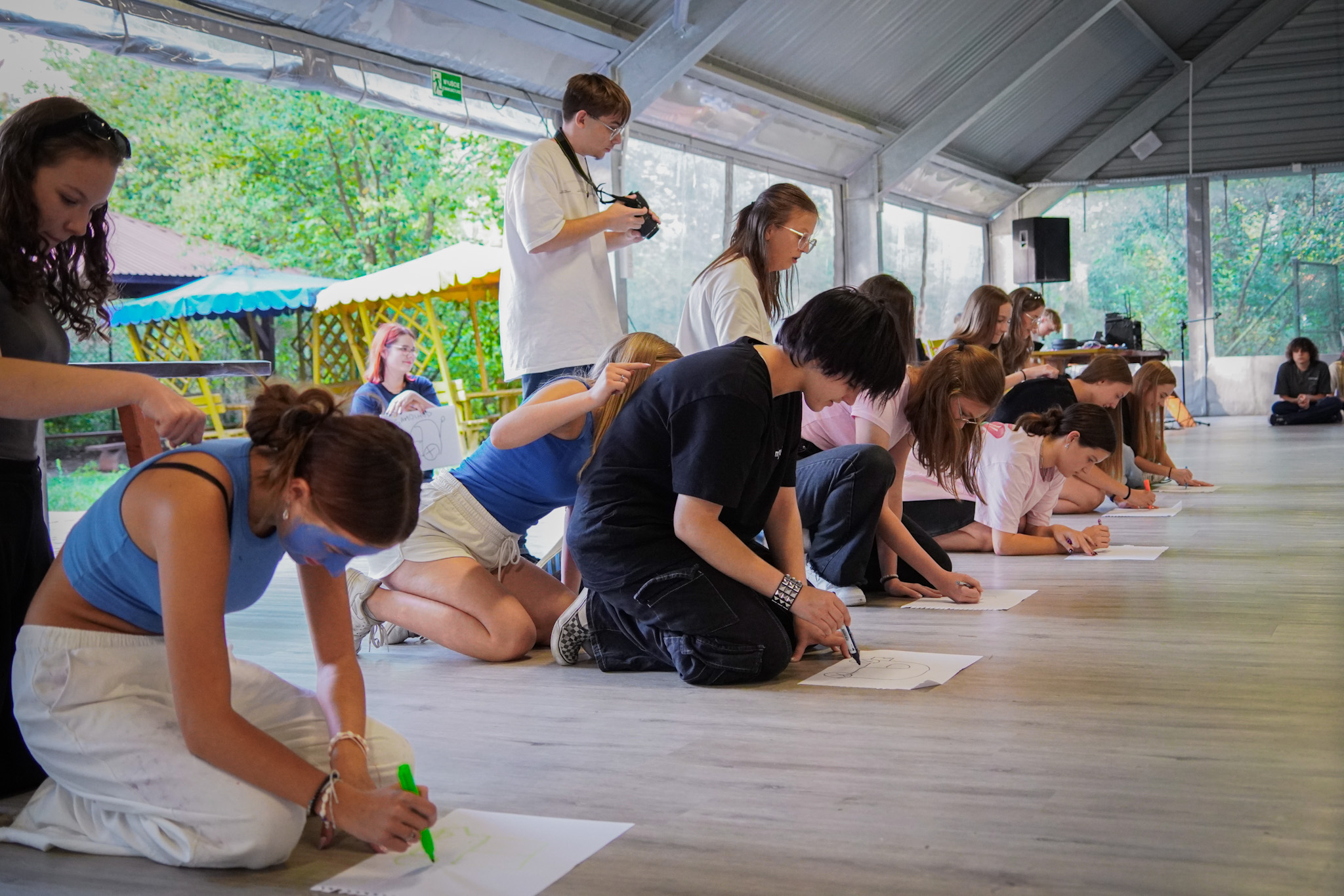 Młodzież wypełniała karty pracy w języku angielskim, wykorzystując informacje zdobyte podczas wizyty w Ogrodzie oraz rozwiązywała zadania w ramach gry terenowej.