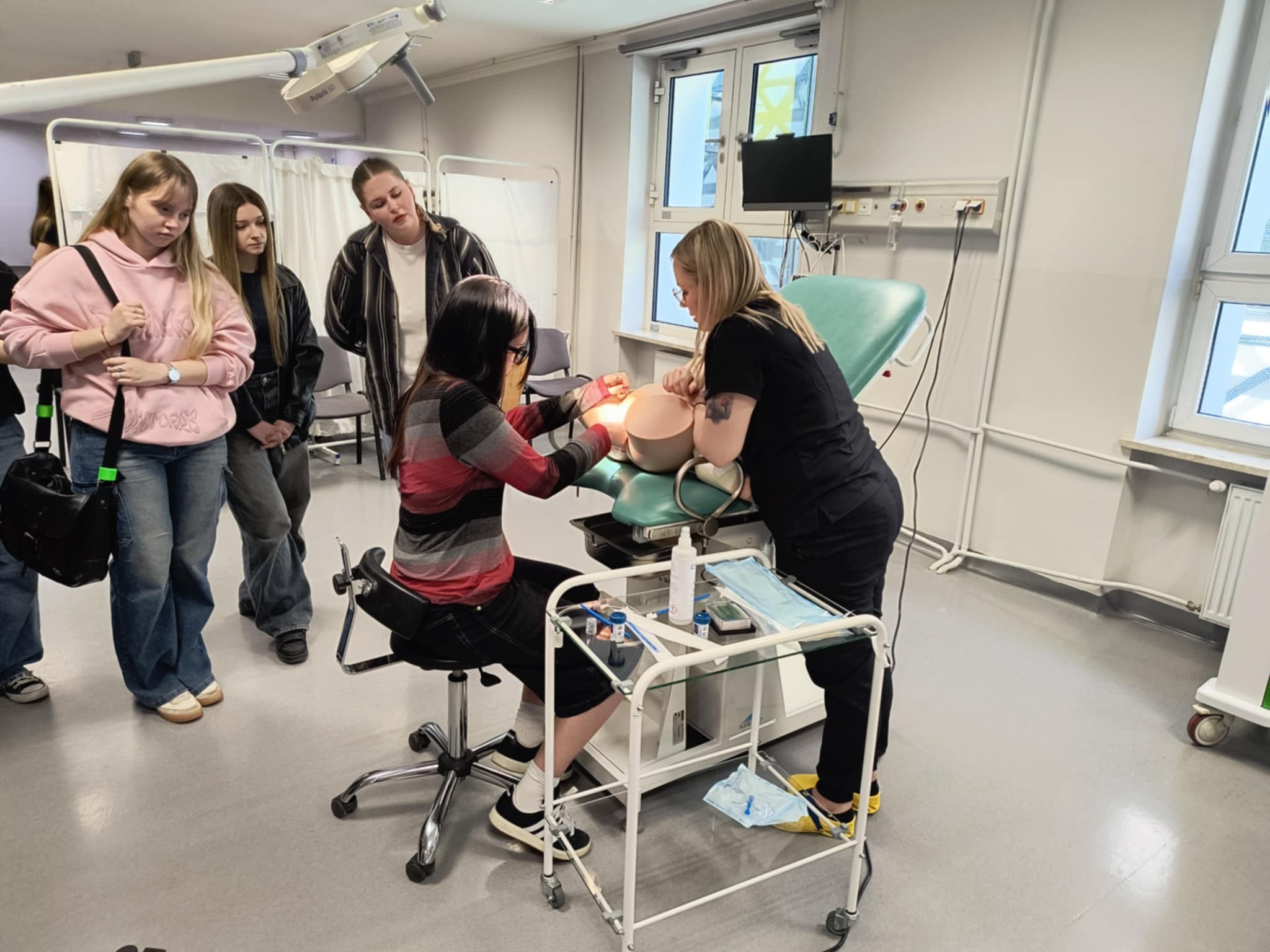 Ćwiczyły pobieranie cytologii oraz asystowały przy porodzie na nowoczesnych symulatorach.