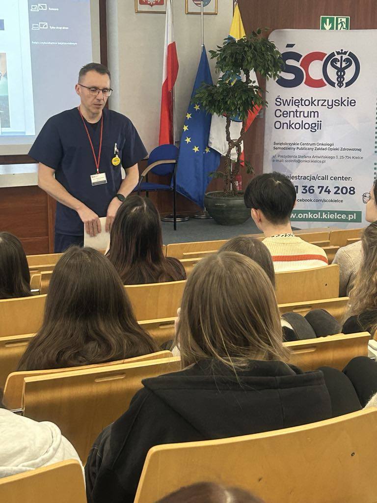 Podczas wizyty licealiści zapoznali się z działalnością Zakładu Fizyki Medycznej oraz Zakładu Diagnostyki Obrazowej Świętokrzyskiego Centrum Onkologii. Mieli okazję zobaczyć, jak wygląda praca naszych specjalistów, poznać urządzenie do napromieniania pacjentów (przyspieszacz liniowy), działanie mammografu, a także przekonać się, jak wykonuje się zdjęcia rentgenowskie, badania rezonansem magnetycznym oraz tomografią komputerową.