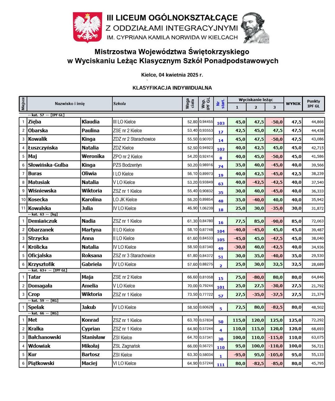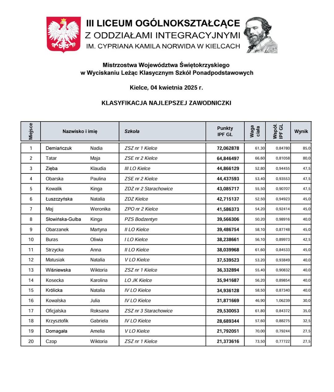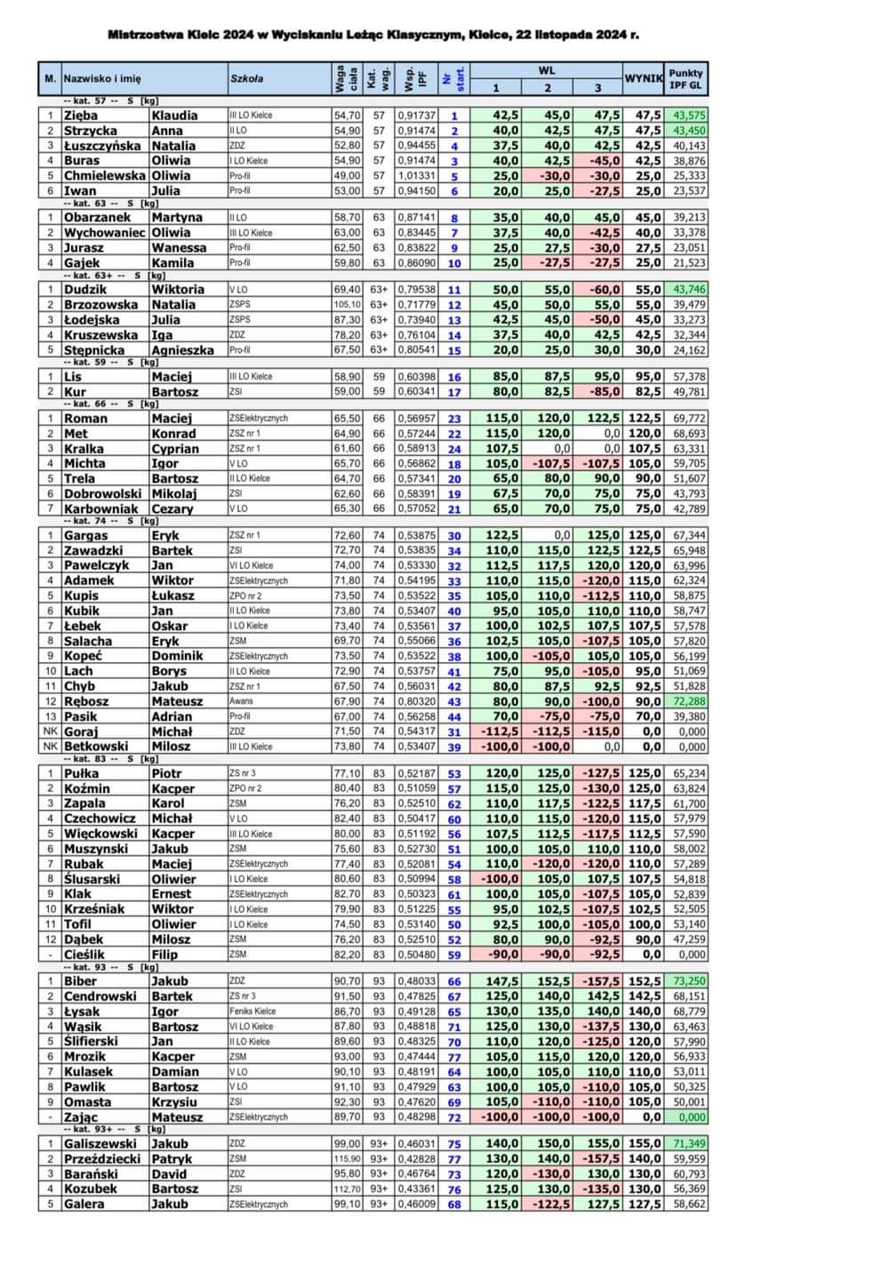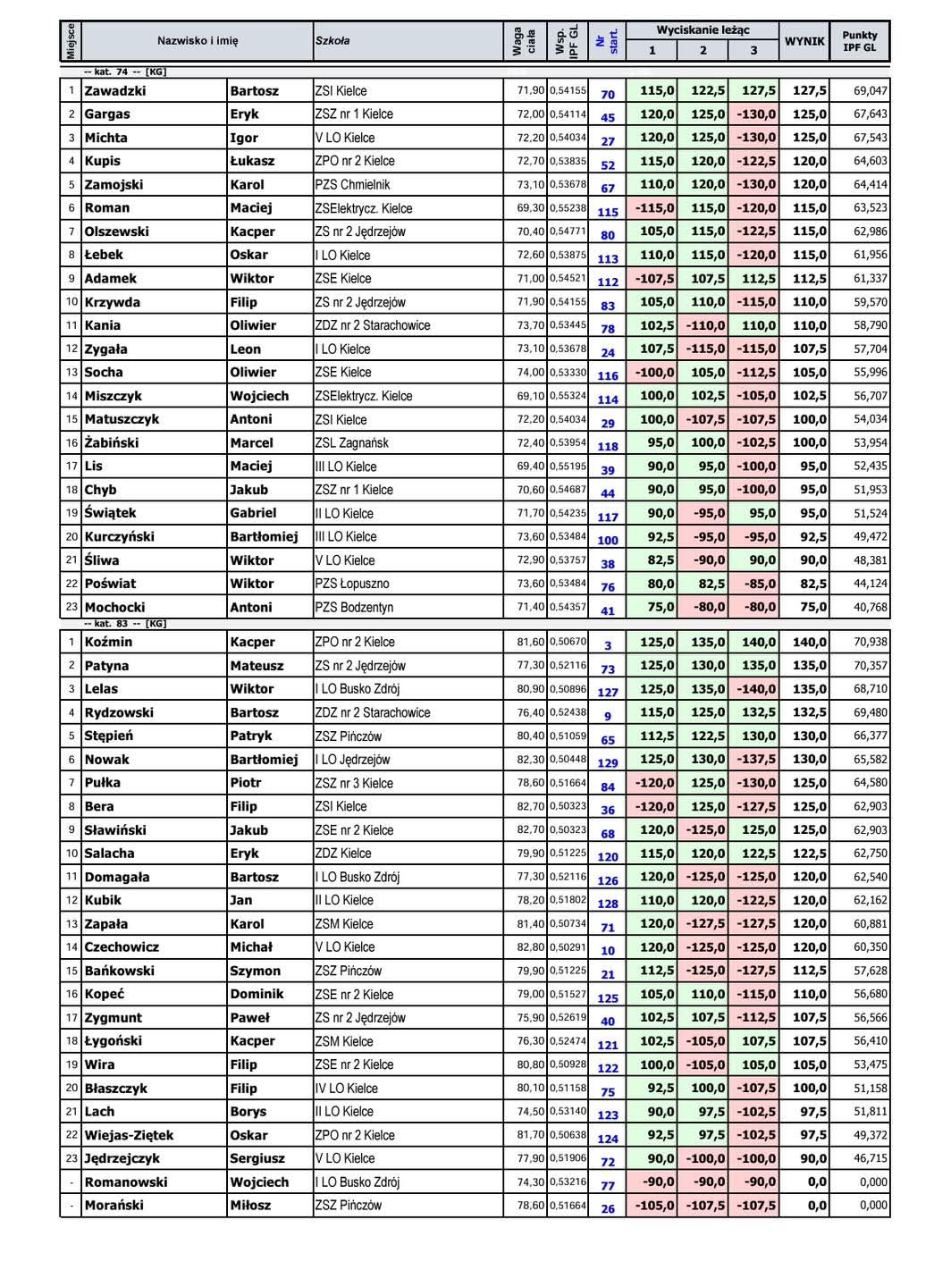 Wyniki zawodów: