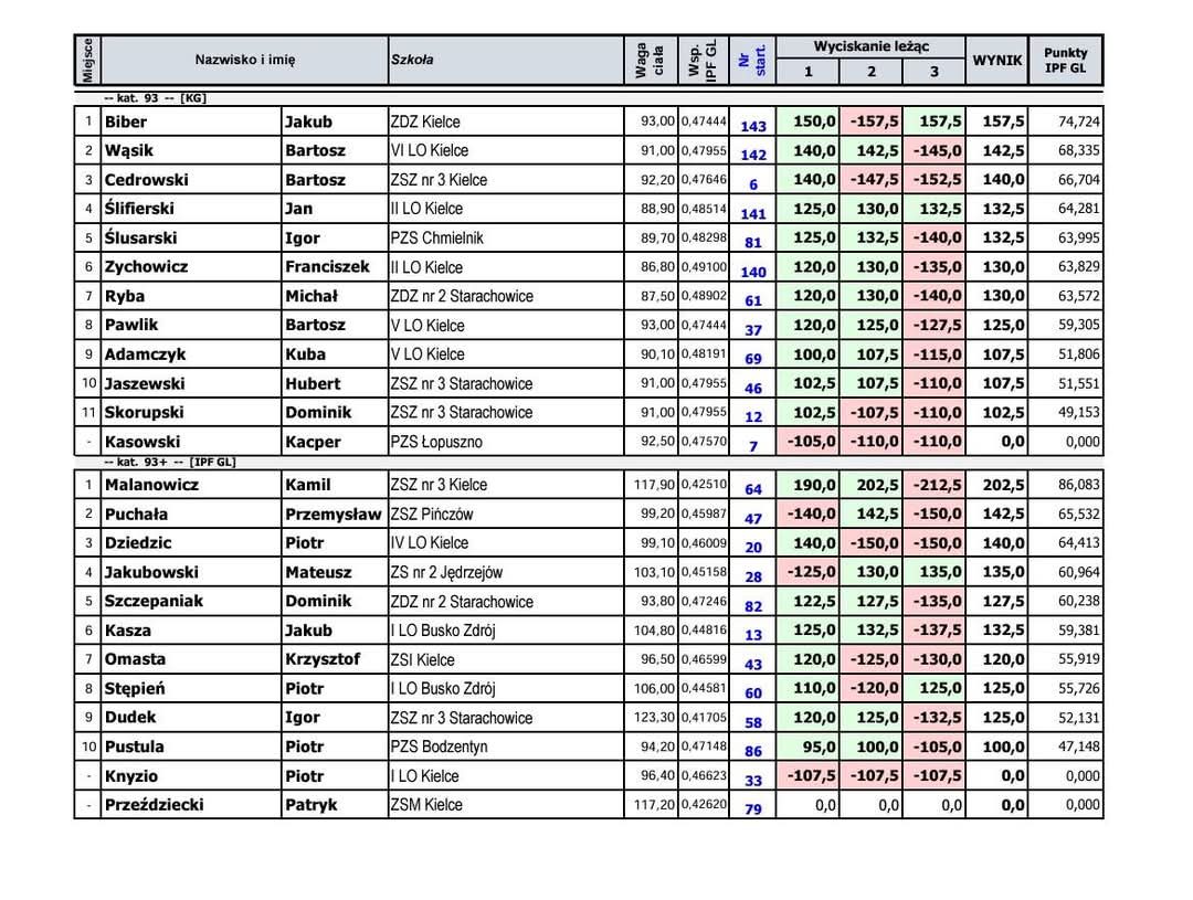 Maciej Lis - wynik 95 kg