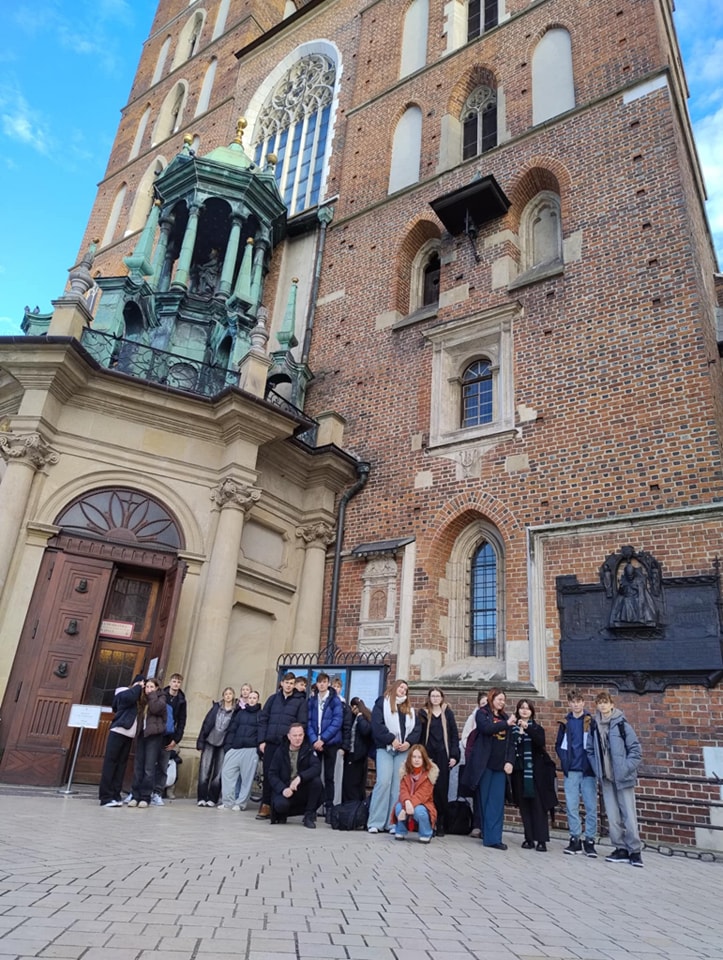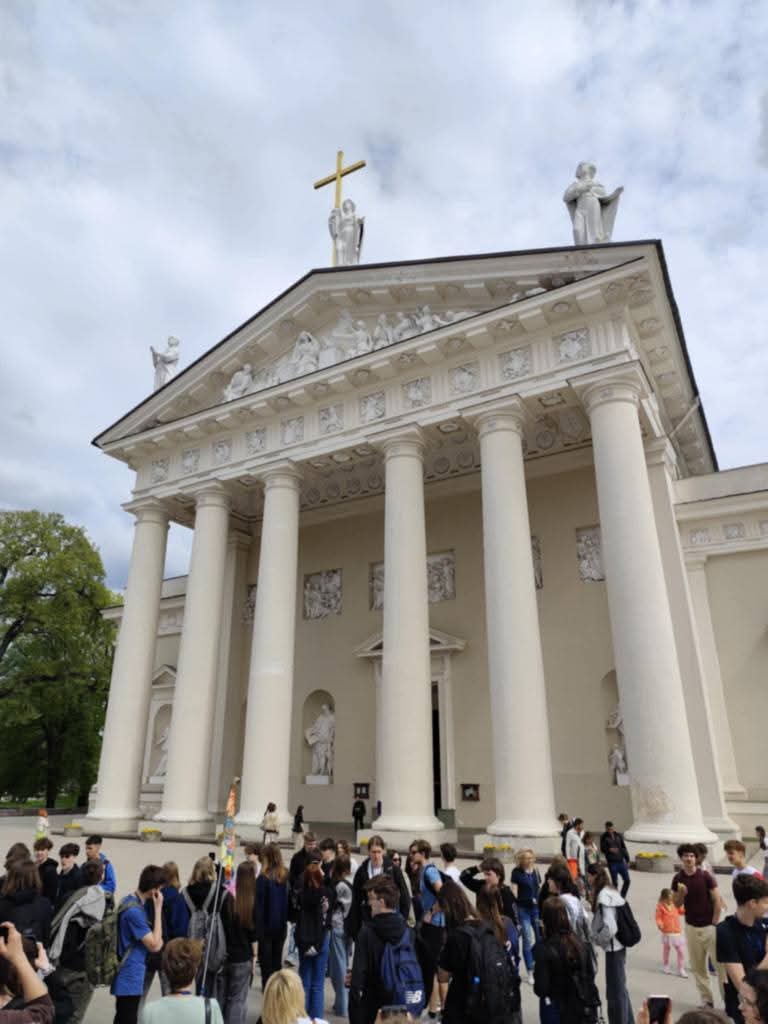 W dniach 23-25 kwietnia 2025 uczniowie klas drugich uczestniczyli w wycieczce do Wilna. Młodzież w ciągu trzech dni odwiedziła wiele ciekawych miejsc powiązanych nie tylko z polską kulturą ,ale także z wydarzeniami współczesnymi. Uczniowie zobaczyli m.in.: Wileńską Wieżę Telewizyjną, która jest najwyższym budynkiem na Litwie i jedną z najwyższych wież telewizyjnych na świecie; Cmentarz Na Rossie- jedną z czterech polskich nekropolii narodowych. To tu znajduje się m.in. Mauzoleum Matka i Serce Syna – Józefa Piłsudskiego; Ostrą Bramę; cerkiew św. Ducha; klasztor bazylianów; ratusz; dawną dzielnicę żydowską; Sanktuarium Miłosierdzia Bożego.