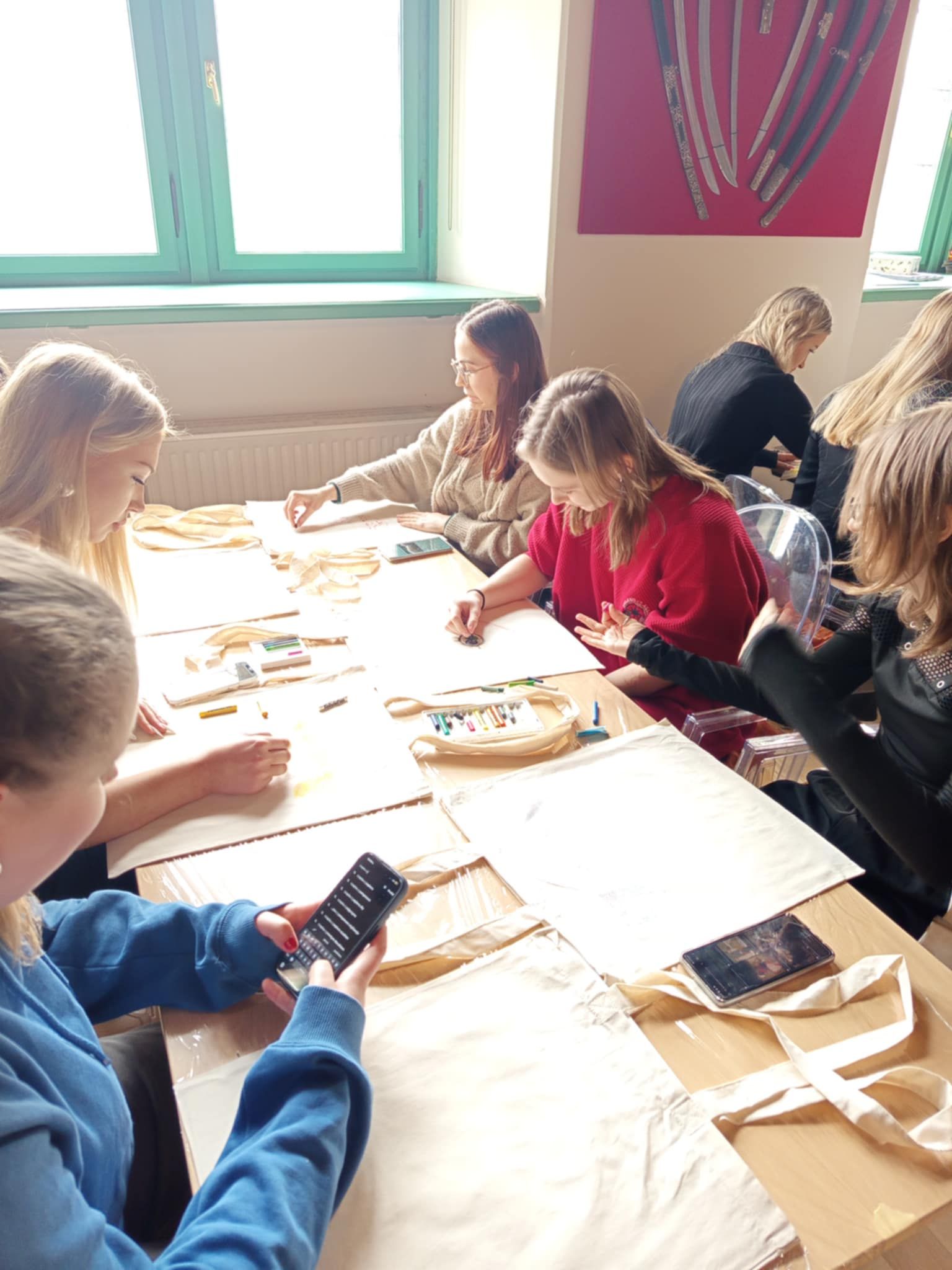 25 marca uczniowie klasy 3A wraz z p.Elżbietą Polak-Cieślik oraz z p.Ewą Kałużą uczestniczyli w warsztatach dotyczących "Wesela" i Młodej Polski. Odbywały się one w Muzeum Narodowym w Kielcach, a ich punktem kulminacyjnym było tworzenie torby według własnego projektu.