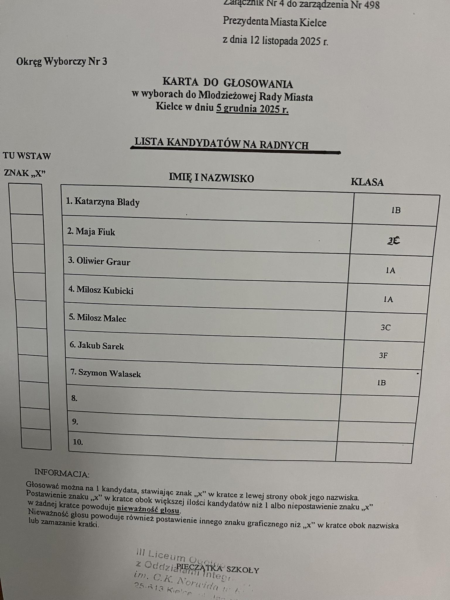 Kamilowi Łapińskiemu – kl. 3A
