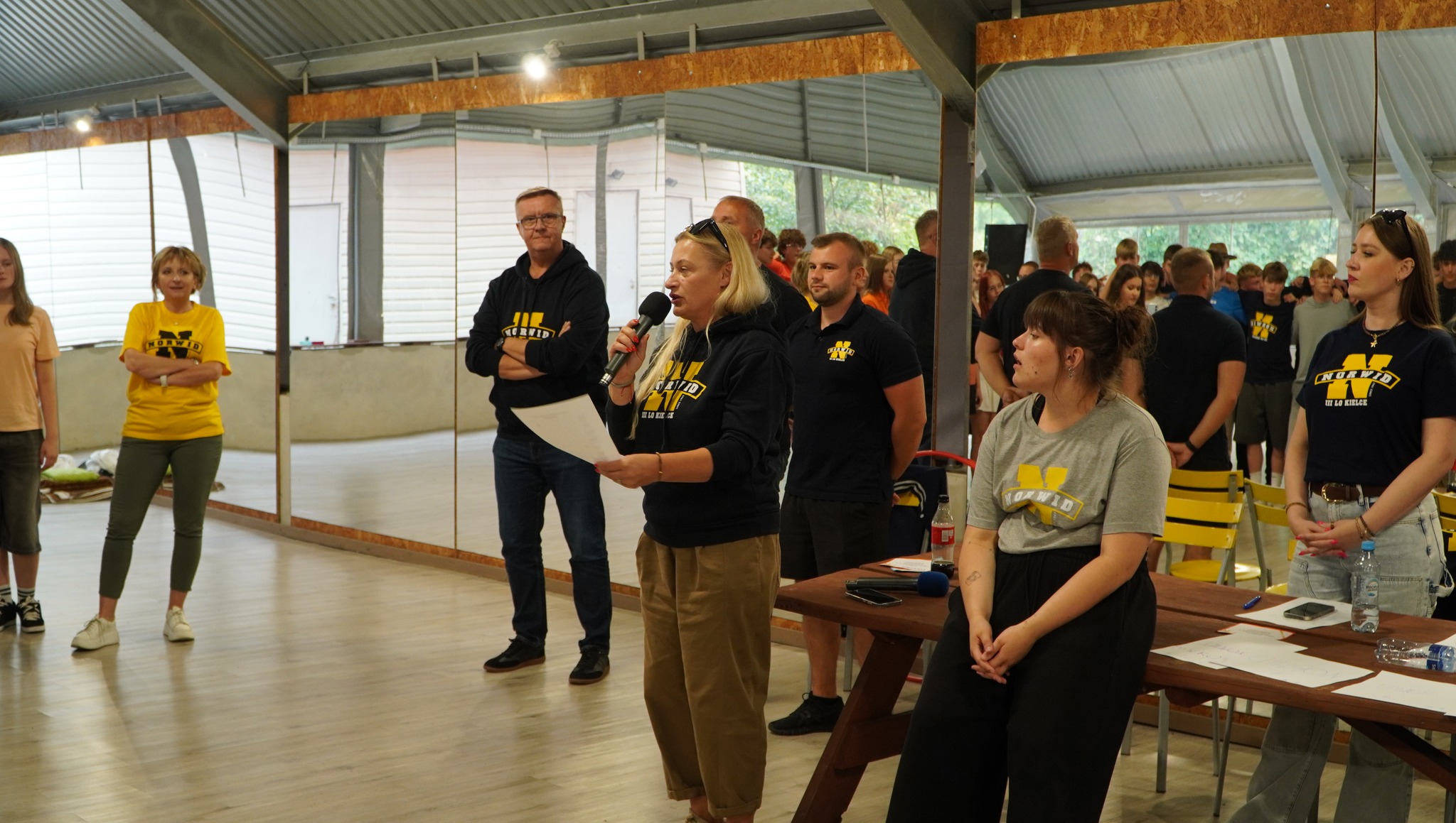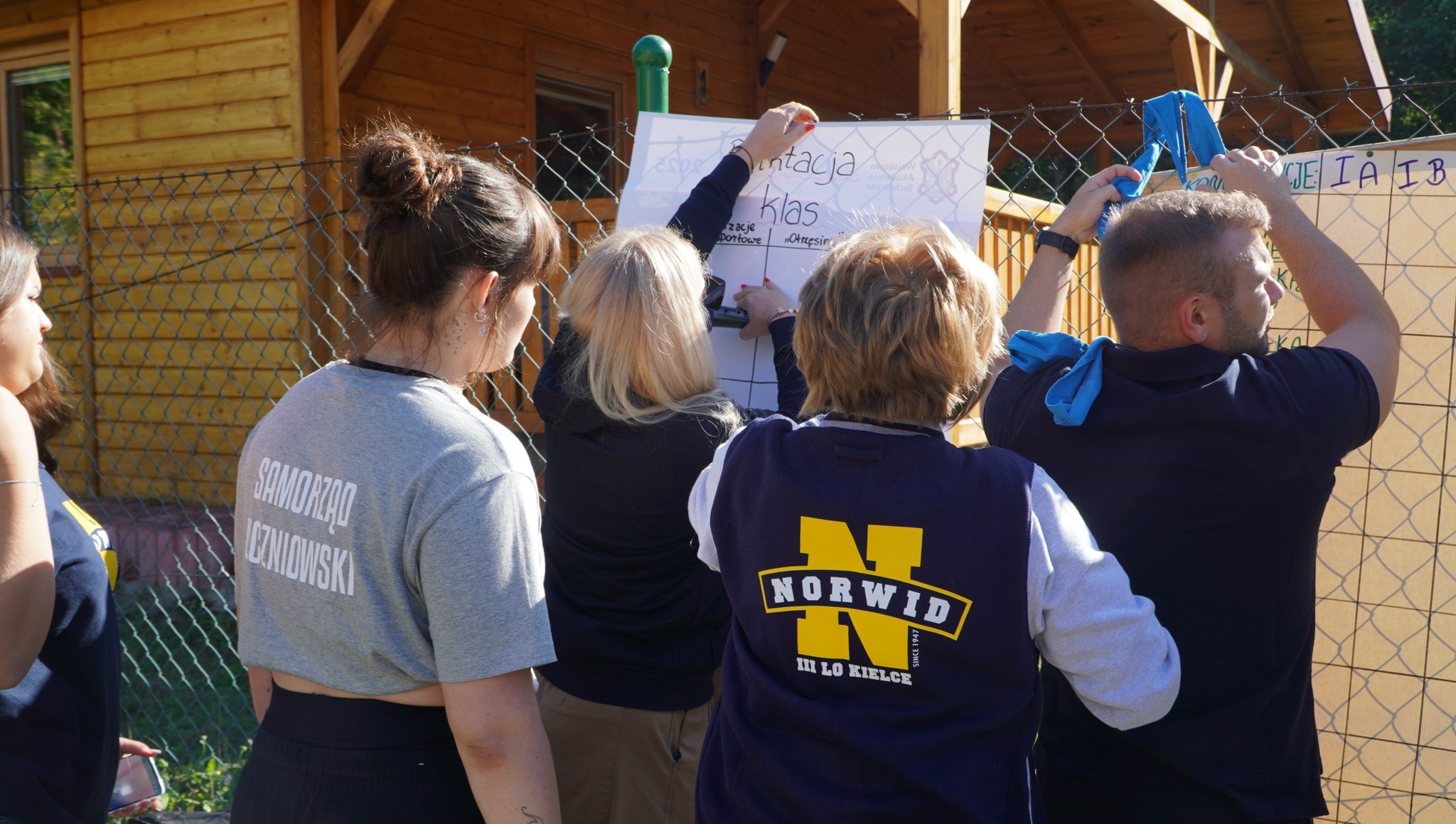 ! Celem był Bocheniec czyli OBÓZ INTEGRACYJNY KLAS PIERWSZYCH . No i zaczęło się! Panowie Wuefiści, zorganizowali mnóstwo atrakcji związanych ze sportem, bo nic tak nie integruje zespołu, jak wspólna walka o wygraną. Biegi, rzucanie ringo, skakanka i czego tam jeszcze nie było. Energia niemalże 200 osób unosiła się w powietrzu. Po południu każda z klas zgodnie ze swoim profilem zaprezentowała się od, jak najlepszej strony. Układy taneczne, piosenki, stroszenie piórek, żeby tylko wygrać. ,,Pierwszaki" aby stać się prawowitymi Norwidziakami musieli przejść chrzest bojowy wykazując się wiedzą i sprytem. Wszystko to przygotowały dziewczyny z Samorządu - Ania Gil iEmilka Dobrut. Ależ było głośno! Poziom decybeli odpędzał wszystkie chmury, więc piękna pogoda dopisała do końca. A na koniec dnia gwóźdź programu, dyskoteka