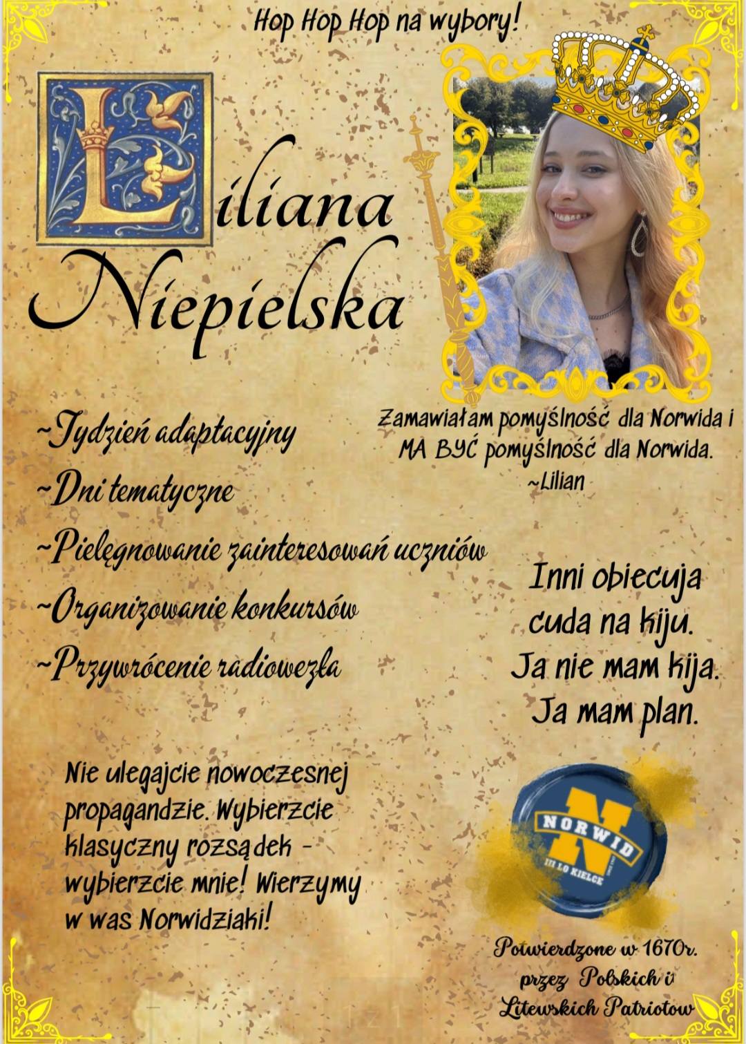 . Za zorganizowanie tego wspaniałego przedsięwzięcia dziękujemy niezastąpionym Paniom Iwonie Kruk i Laurze Cedro, dziewczynom z Samorządu Szkolnego Ani Gil i Emilce Dobrut, chłopakom z nagłośnienia Michałowi Krajewskiemu i Bartkowi Kurczyńskiemu oraz szkolnej telewizji NorVidTV Borysowi Połeć, Mateuszowi Osuch i Julii Zielonce .