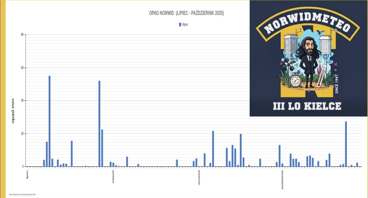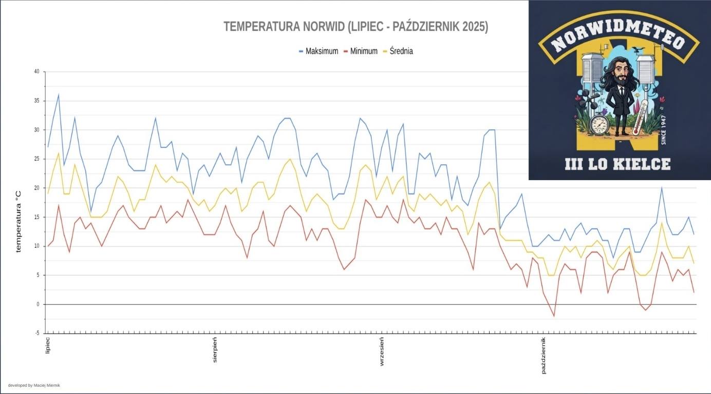 Jeszcze w dniu 05 termometry wskazywały upalne 31°C, by zaledwie 24 godziny później, w dniu 06, spaść do poziomu 19°C. Psychologiczny wpływ tak nagłego ochłodzenia o 12 stopni w jeden dzień jest ogromny. Trend ten potwierdził się pod koniec miesiąca, gdy w dniu 29 temperatura maksymalna osiągnęła już zaledwie 10°C. To moment, w którym natura jasno zakomunikowała koniec sezonu wegetacyjnego.