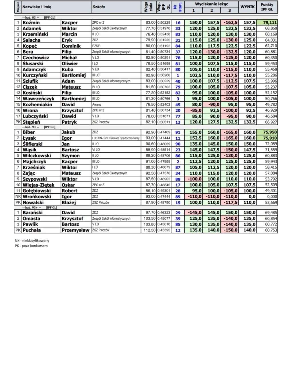 Punkty dla drużyny zdobyły: