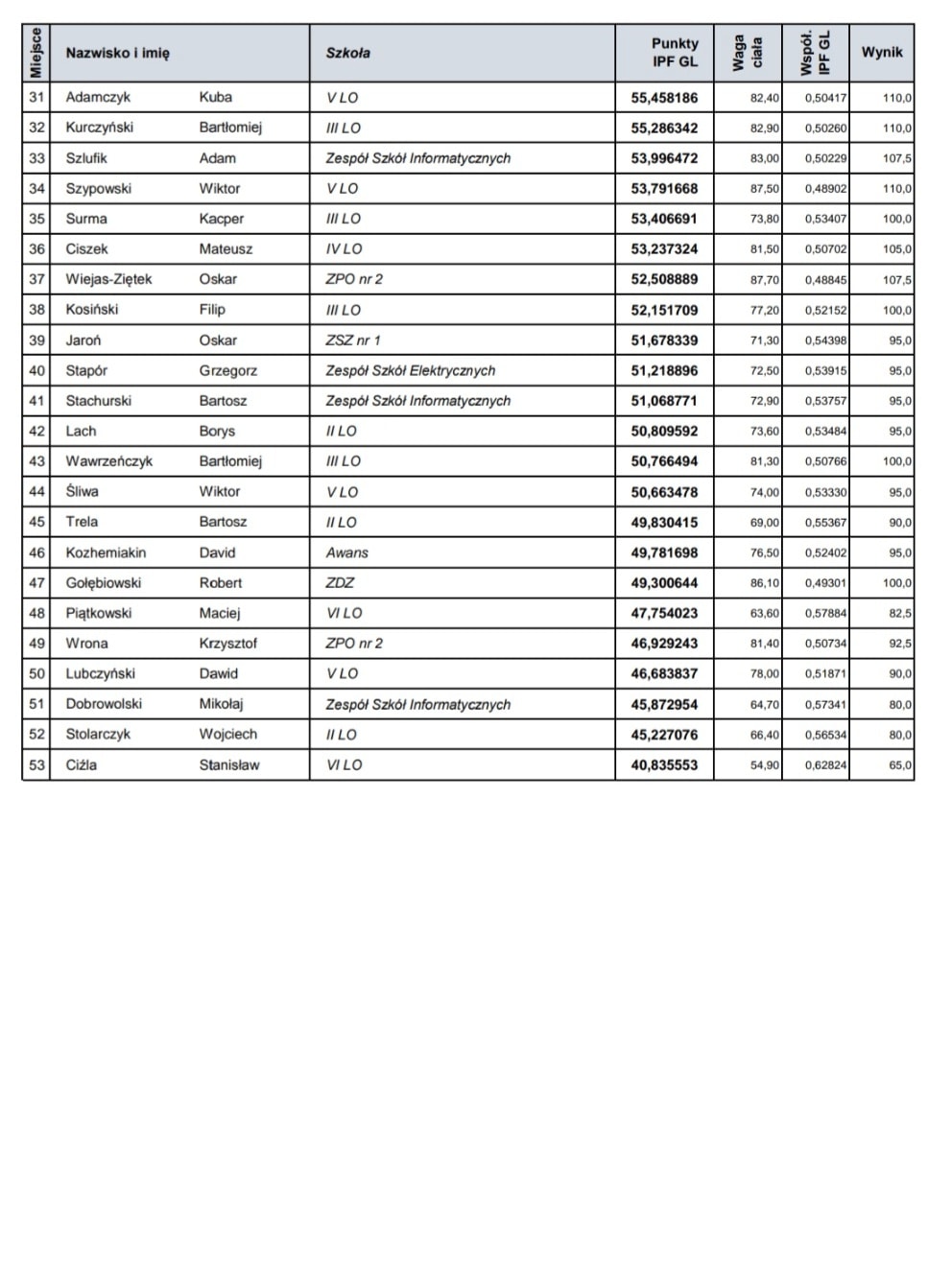 Pozostali uczestnicy konkursu również osiągnęli bardzo dobre wyniki i otrzymali dyplomy uznania – gratulujemy wszystkim, którzy podjęli wyzwanie i reprezentowali naszą szkołę w konkursie ogólnopolskim.