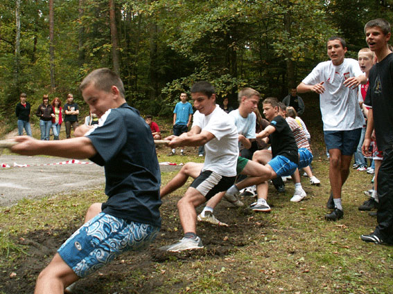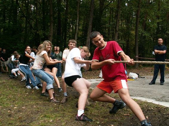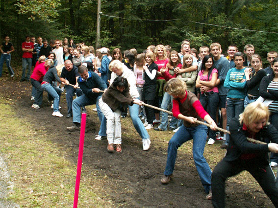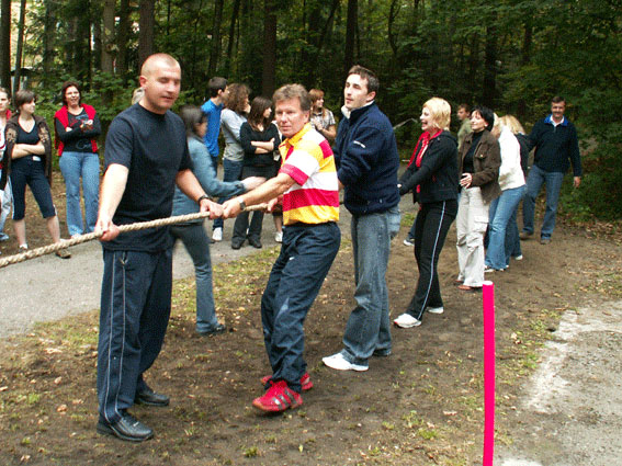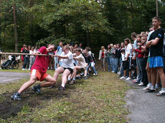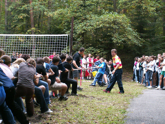 Po obiedzie zaczęły się rozgrywki między klasami. Najpierw przeciąganie liny, w której zwyciężyła klasa 1B,