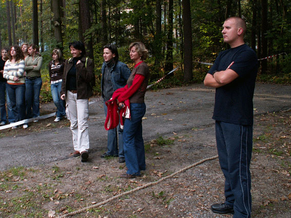 Podczas tej rywalizacji kolejni uczestnicy przygotowywali się do biegu przełajowego, którego trasa wiodła przez las.