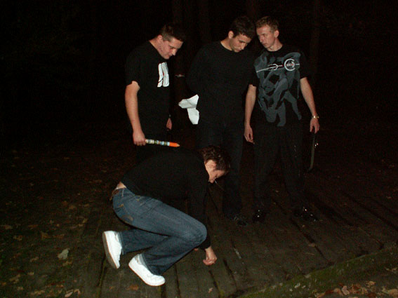 "chrzest kotów". Podchwytliwy test, który często kończył się turlaniem po szyszkach, następnie