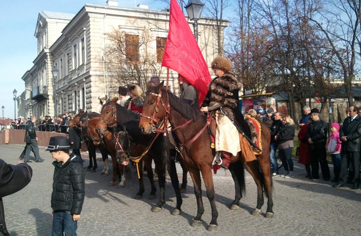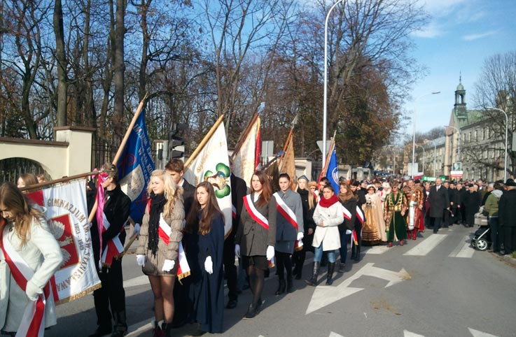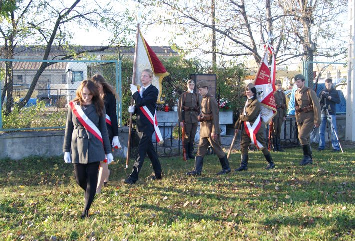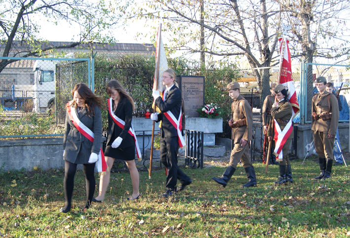 oraz organizacji społecznych, mieszkańcy przemaszerowali ulicą Jana Pawła II przed Pomnik Czynu Legionowego.