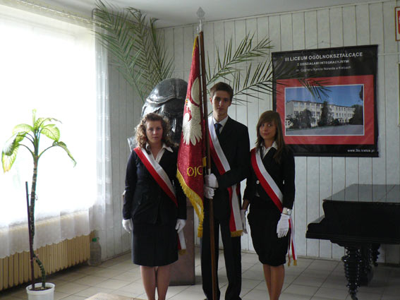6 października Poczet Sztandarowy III L.O. w składzie: Anna Sokół, Bartosz Mondzik,